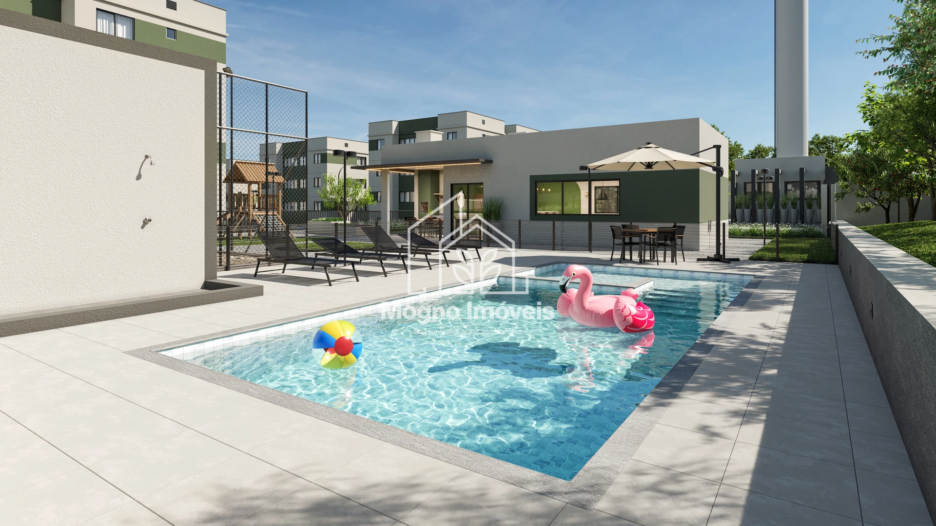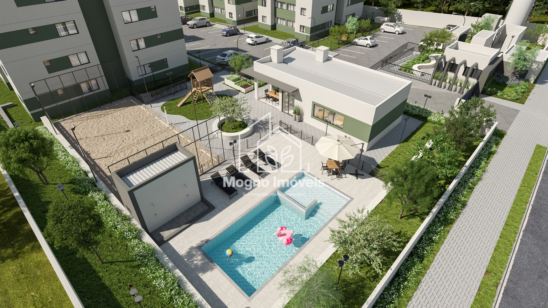 Com infraestrutura completa, o condomínio oferece portaria 24h, salão de festas, piscina com vestiário, quadra de areia, playground, horta, bicicletário e até espaço pet com área de banho — tudo planejado para proporcionar qualidade de vida no seu dia a dia.