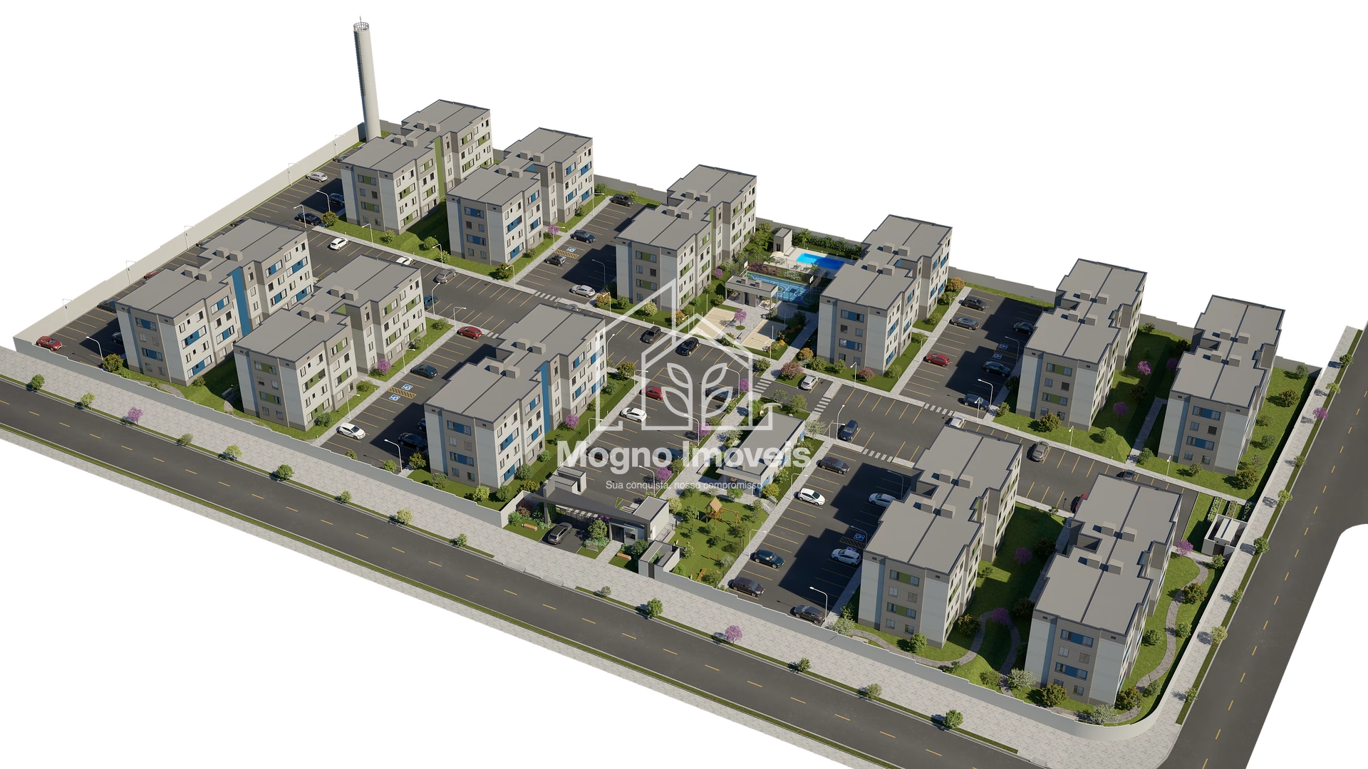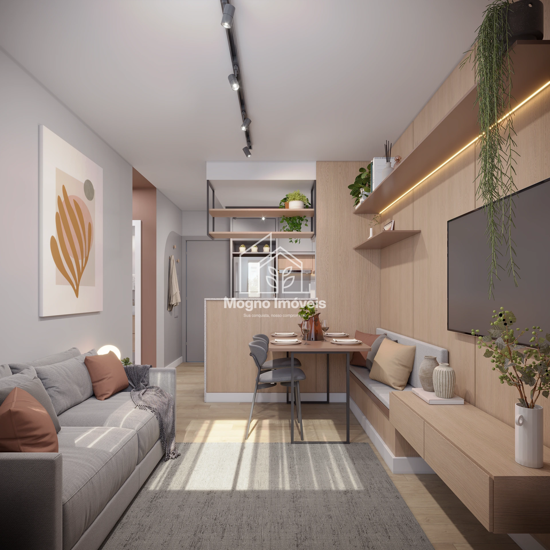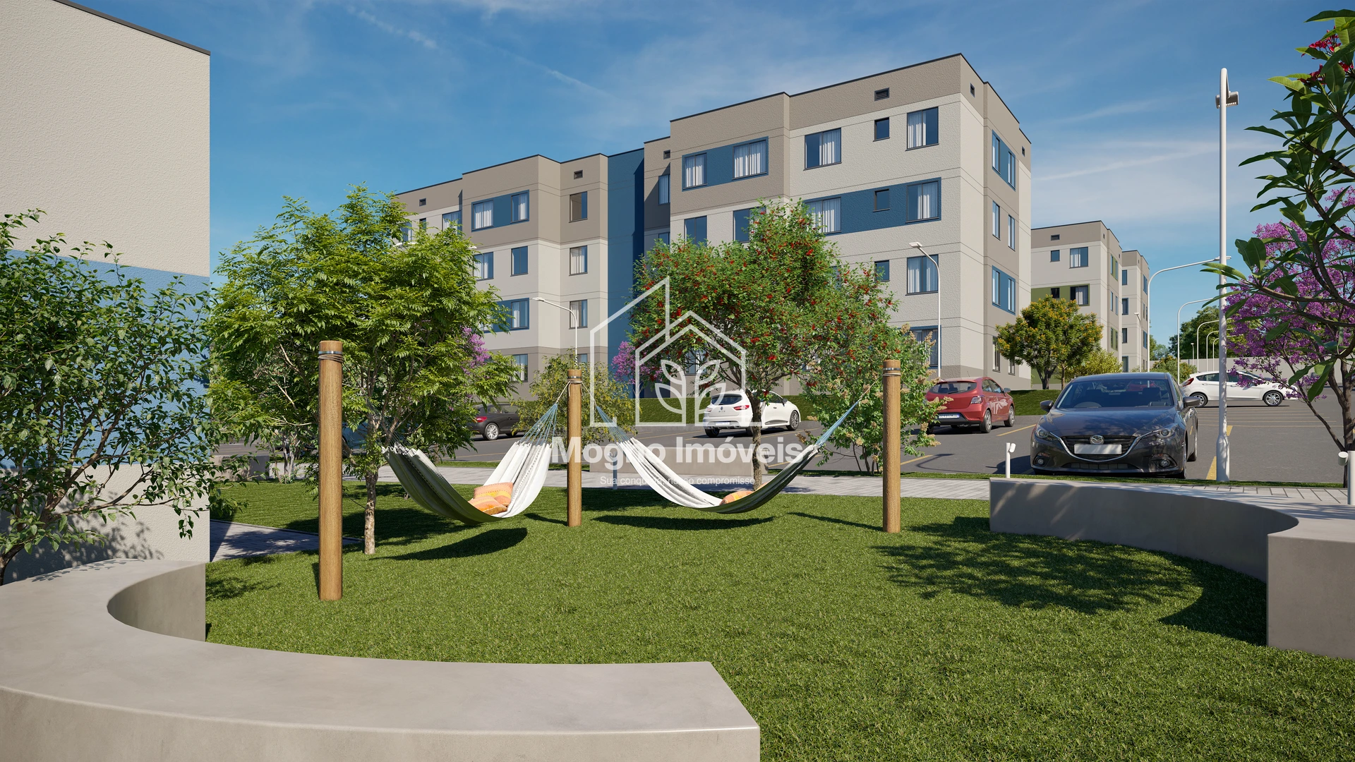 Com arquitetura contemporânea e funcional, os apartamentos de 2 quartos (com metragens de 40,47m² a 42,77m²) foram pensados para valorizar luz natural, ventilação e o aproveitamento dos espaços, tornando cada ambiente mais acolhedor e prático.