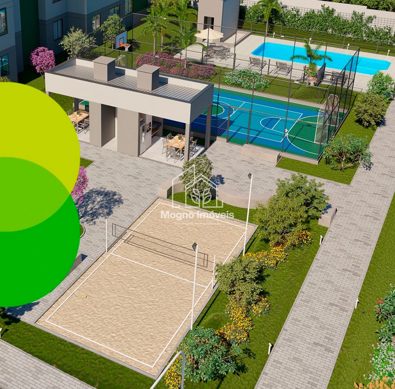 O condomínio clube conta com mais de 10 opções de lazer, como piscina com vestiário, quadras esportivas e de areia, salão de festas, academia, redário, playground, churrasqueiras, horta e até espaço pet com área de banho. Um verdadeiro refúgio urbano para quem valoriza qualidade de vida.
